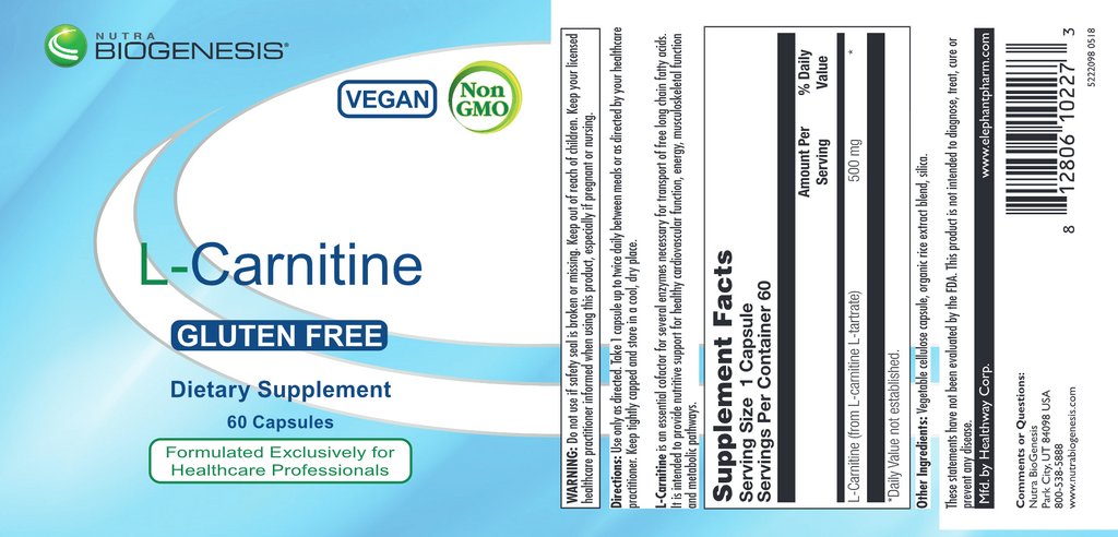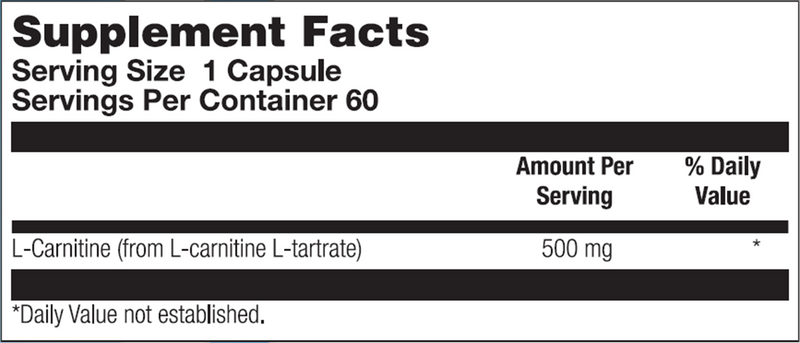 L-Carnitine is an essential cofactor for several enzymes necessary for transport of free long chain fatty acids. It is intended to provide nutritive support for healthy cardiovascular function, energy, musculoskeletal function, and metabolic pathways.