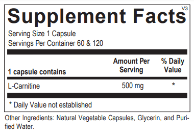 OVERVIEW: L-carnitine is an amino acid essential for the transport of fatty acids into the cell mitochondria. Research has shown that L-carnitine stimulates the use of fat for fuel and boosts metabolism, which plays a key role in weight management. L-carnitine has also been found to support cardiovascular health and to increase aerobic capacity during exercise. The L-Carnitine formulation provides 500 mg of L-carnitine per capsule, now delivered using quick-release, fast-absorbing Licaps® Technology. The Licaps® capsule shell matrix seals and protects the nutrient inside with a nitrogen bubble, ensuring maximum freshness. The thin shell dissolves rapidly, releasing a liquid formulation that speeds nutrient absorption. These cutting-edge advancements in capsule filling, sealing and nutrient delivery ensure therapeutic potency and efficacy.