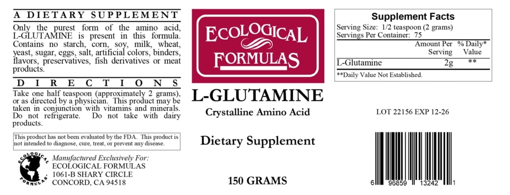 The L-Glutamine Powder by Ecological Formulas is designed to supplement natural levels of glutamine to support the bodies need for glutamine.