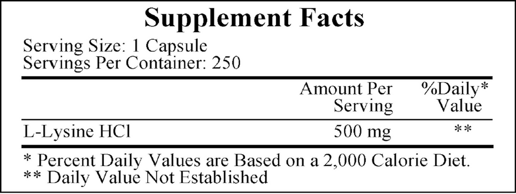 Take one capsule daily between meals, or as directed by a physician. L-Lysine may be taken in conjunction with vitamins and minerals. Do not refrigerate. Do not take with other dairy products.