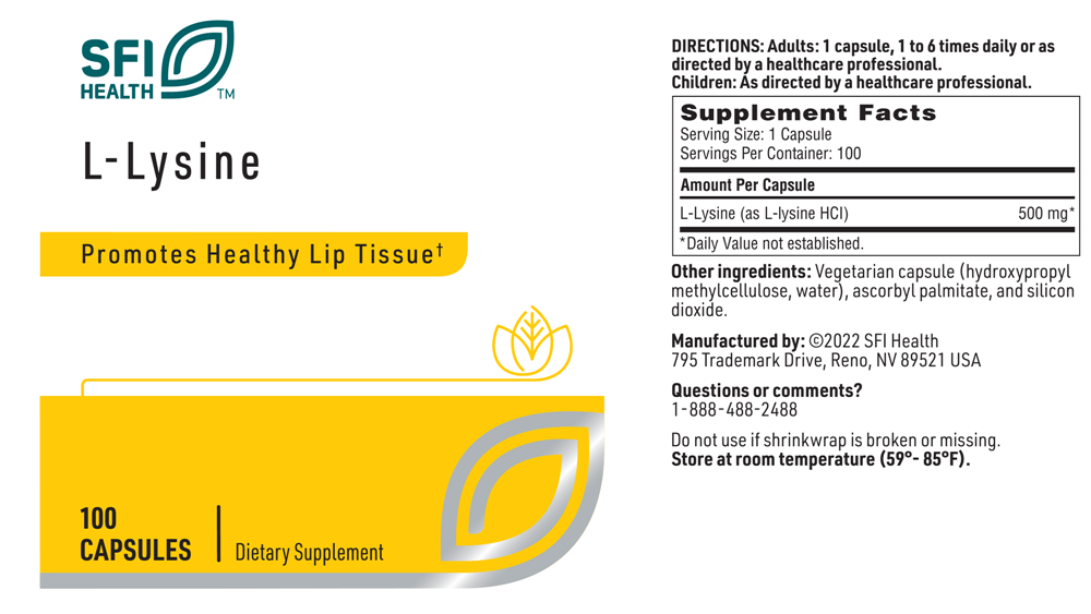 One of the 9 essential amino acids that must be obtained from food, lysine is a key player in enzyme production, collagen formation, and tissue repair. L-Lysine is particularly helpful in maintaining healthy gum and lip tissue.1† L-lysine intake may be inadequate in low-protein diets.