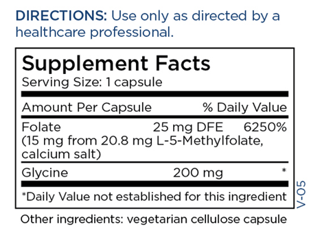 Source Materials: L-methylfolate, calcium salt (Extrafolate S®, Gnosis Bio, Italy) and glycine are made by chemical synthesis. All ingredients are vegan and non-GMO.