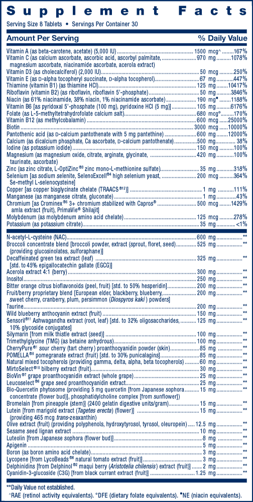 This state-of-the-art formula packed with potent forms of vitamins, minerals and more, includes a highly bioavailable form of quercetin.
