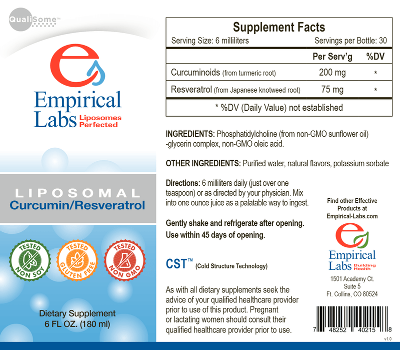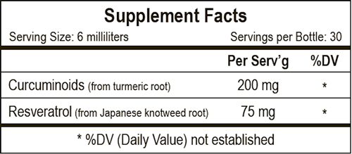 Structured Curcumin and Resveratrol delivering 200 mg curcuminoids and 75 mg resveratrol per serving!