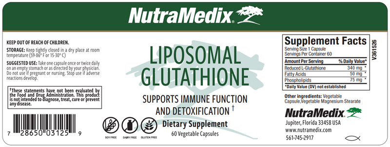 Glutathione is the body’s most important cellular antioxidant.* Because absorption of regular glutathione is low, NutraMedix Liposomal Glutathione is specially formulated to enhance absorption and support the body’s natural antioxidant processes.* Glutathione may help maintain normal antioxidant support, support healthy immune function, maintain normal detoxification support, and support a healthy inflammatory response.*