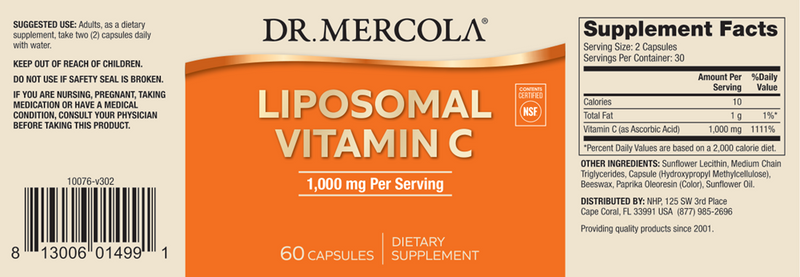 Liposomal Vitamin C from Dr. Mercola provides a highly bioavailable form of the powerful antioxidant vitamin C.