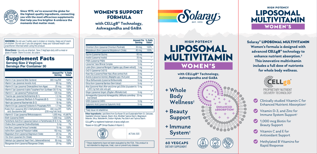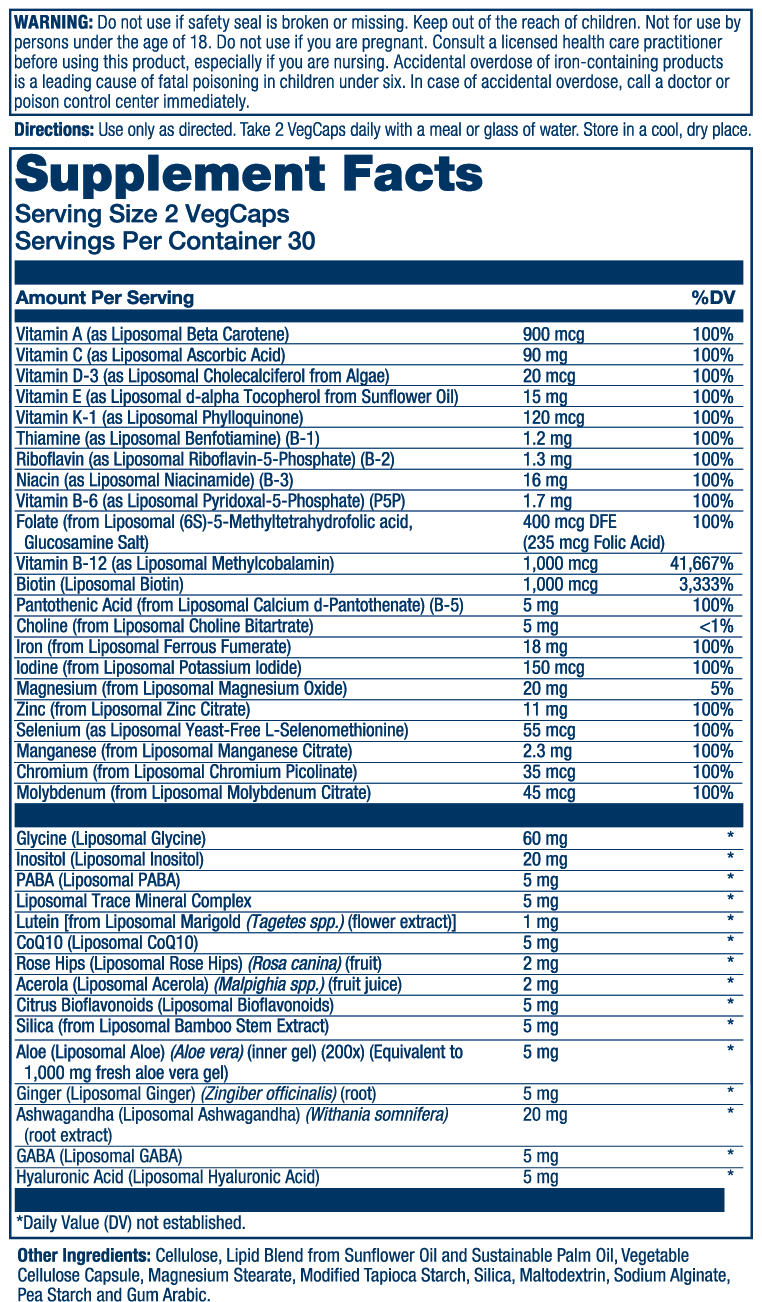 Liposomal Multivitamin Women's formula is designed with advanced CELLg8® technology to enhance nutrient absorption. This innovative multivitamin includes a full dose of nutrients for whole body wellness.