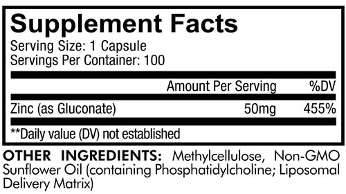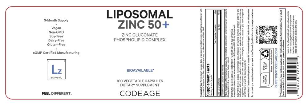 Codeage Liposomal Zinc capsule supplement features 50mg of zinc gluconate, an essential trace mineral element. Derived from glycolic acid and is recognized as a safe (GRAS) substance. This formula comes with a liposomal delivery matrix and non-GMO sunflower oil containing Phosphatidylcholine.
