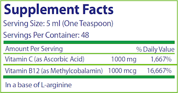 L-argnine is supplied at approximately 550mg per 5mL. L-arginine is converted in the body into a chemical called nitric oxide. Nitric oxide causes blood vessels to open wider. L-arginine also stimulates the release of other substances in the body.