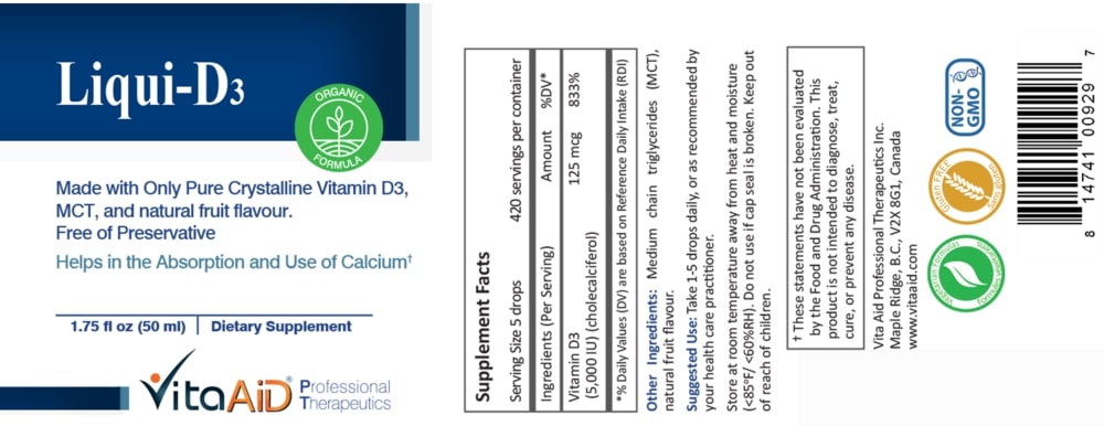 Liquid vitamin D3 (1000 IU/drop).