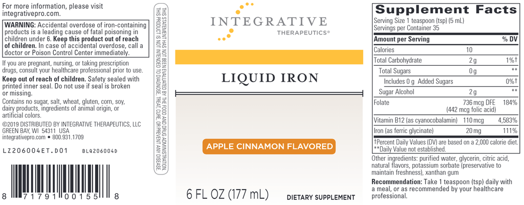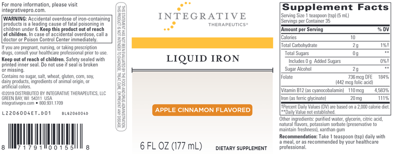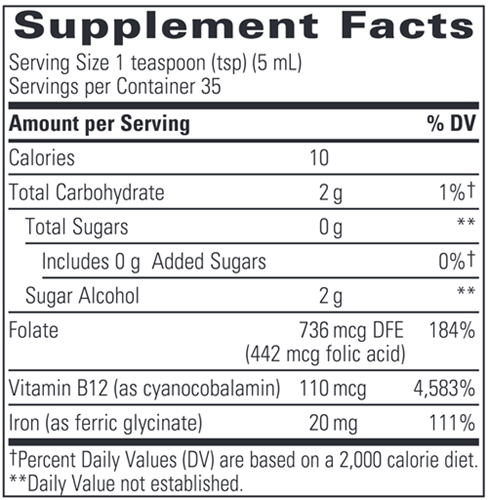 Vegetarians and women of child-bearing age may not get enough iron through diet alone. Liquid Iron is a convenient supplemental option that combines iron with vitamin B12 and folic acid. Supplementation with Liquid Iron helps form hemoglobin in red blood cells, which in turn supports energy and stamina.*