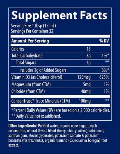 Liquid Vitamin D3 is a dietary supplement that provides 5000 IU of all natural vitamin D3 per serving, plus a full spectrum of ionic trace minerals.