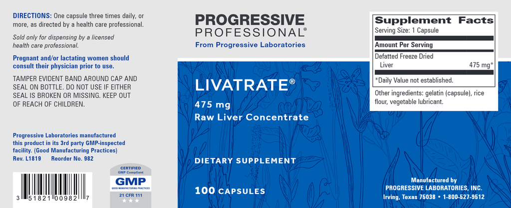 Livatrate capsules provide growth and repair factors for liver regeneration as well as inherent B vitamin, mineral, enzyme and nucleic acid components.