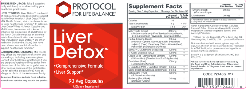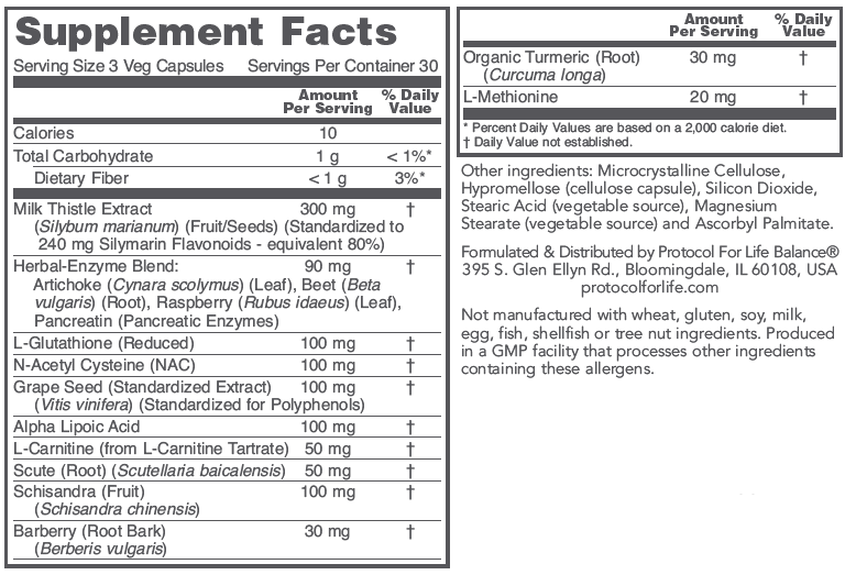 Liver Detox Support combines milk thistle extract with a unique herb-enzyme blend to create a balanced botanical formula for the support of healthy liver function.* This product also features glutathione, a potent free radical scavenger that also plays a critical role in maintaining the body's normal elimination pathways.* Nutrients such as N-acetyl cysteine and methionine are included to support the body’s own production of glutathione.*