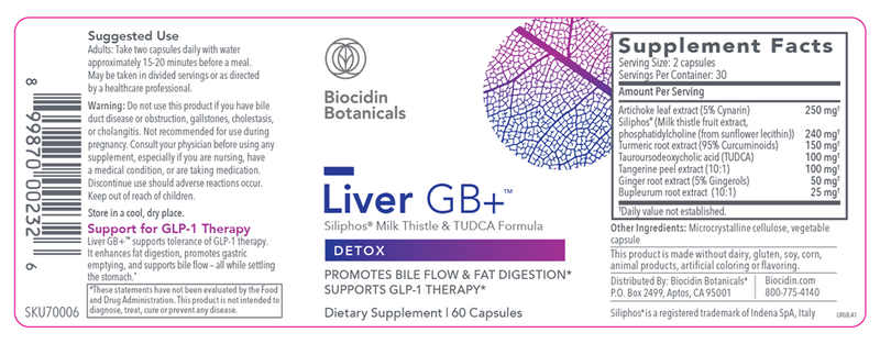 Liver GB+™ is a synergistic two-in-one formula like no other that bolsters the body’s detoxification pathways.* Formulated with traditional botanicals and the bioidentical bile acid TUDCA, Liver GB+™ supports healthy liver and gallbladder function, accelerates detoxification by increasing bile flow, promotes digestion, and may soothe side effects of GLP-1 therapy.*