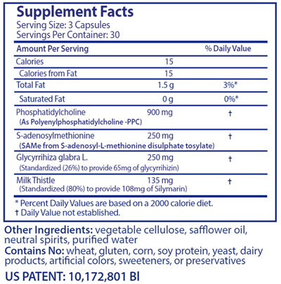 The combination of four clinically significant and synergistically active ingredients, Advanced Micronized PPC Liposomes to increase absorption and bioavailability, and a Delayed Release Dual Capsule Technology can be considered a new breakthrough in hepatic support and function.