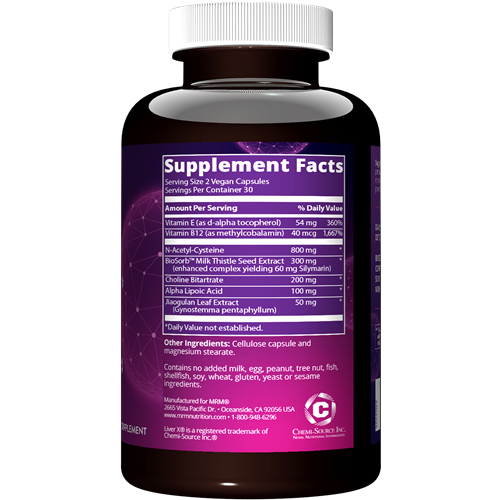 Liver X® is a unique combination of nutrients that incorporates n-acetyl-cysteine (NAC), alpha-lipoic acid, BioSorb™ silymarin, choline, Vitamins E and B12, and a new powerful herb called Jiaogulan (Gynostemma pentaphyllum). Free radicals, being very unstable and reactive, can cause cellular damage and eventually serious pathology. Eradicating toxins and reducing free radical damage is one of the most important action of the liver. NAC supports production of glutathione (GSH), which assists detoxification and acts directly as a free radical scavenger.* GSH is a powerful free radical scavenger and an essential component of the liver’s detoxification process.*