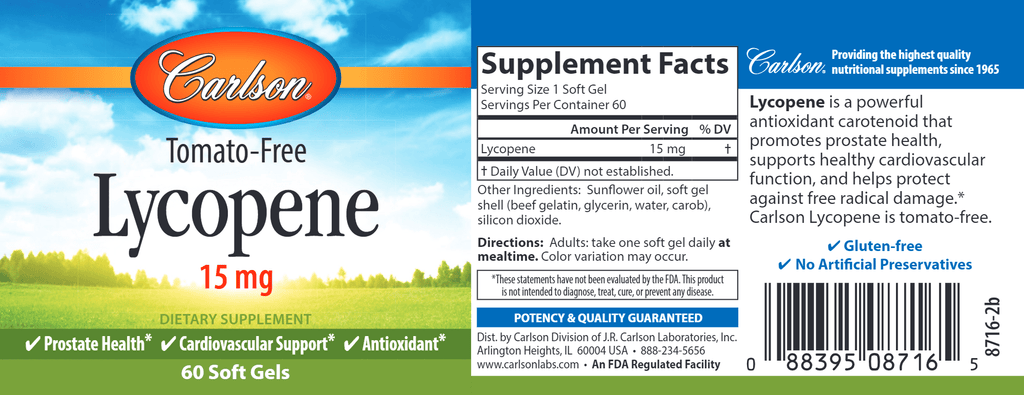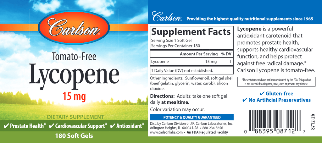 Ripe tomatoes, mouth-watering watermelons, tropical guavas, tangy apricots, and tart pink grapefruit all have one thing in common: lycopene. Lycopene is a red carotenoid that promotes prostate health, supports healthy cardiovascular function, and helps protect against free radical damage. Each soft gel provides 15 mg of tomato-free lycopene.