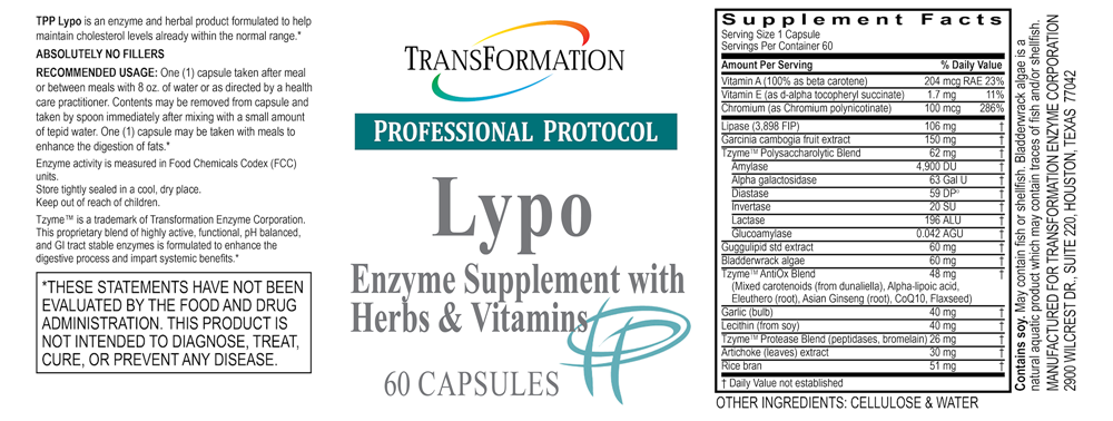 Transformation’s Professional Protocol™ Lypo is an enzyme and herbal product formulated to help maintain cholesterol level already within the normal range.*