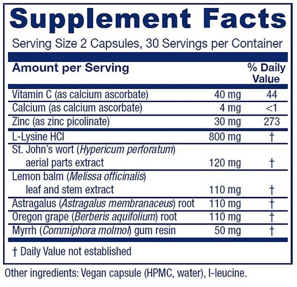 Provides researched nutritional and botanical support for healthy immune system response with the added benefits of lysine.*