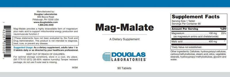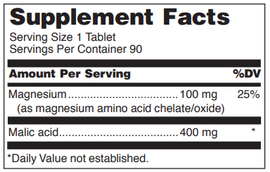 Mag-Malate tablets, provided by Douglas Laboratories®, provide magnesium and malic acid, two key nutrients involved in energy production. Mag-Malate provides magnesium as an Albion glycine/lysine amino acid chelate, which has superior absorption and is highly tolerated.