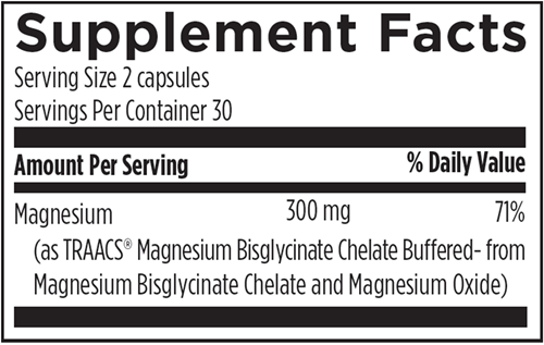 Magnesium Glycinate Complex contains highly absorbable magnesium with each capsule providing 150 mg of elemental magnesium. This product should not cause any of the unfavorable gastrointestinal (GI) symptoms associated with magnesium supplementation due to the very stable chelate formed between two glycine molecules and each magnesium ion via a patented process.