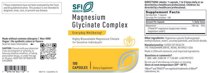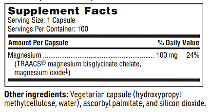 Magnesium supports more than 300 biochemical reactions in your body and acts as a catalyst in thousands of enzymatic processes, regulates and maintains vascular tone, opposes calcium deposition into soft tissue, and is critical to proper bone formation.† For optimal absorption, this formulation uses magnesium combined with amino acid glycine to create a unique chelated compound that is highly bioavailable and well tolerated by even the most sensitive individuals.†