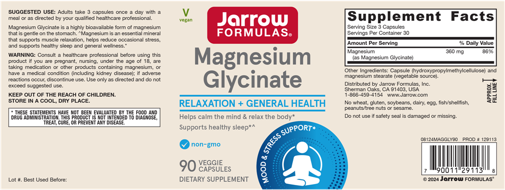 Magnesium Glycinate is a highly bioavailable form of magnesium that is gentle on the stomach. Magnesium is an essential mineral that supports muscle relaxation, helps reduce occasional stress, and supports healthy sleep and general wellness.*