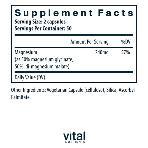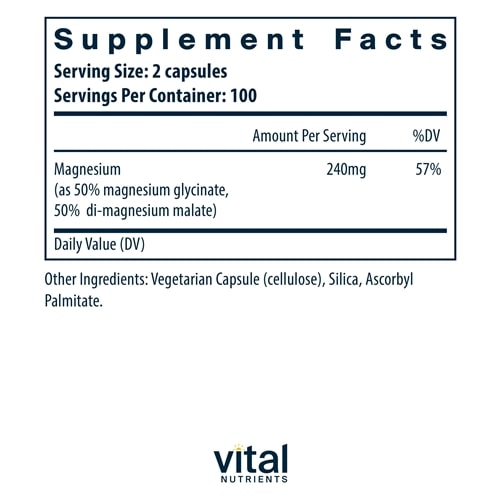 Magnesium (glycinate/malate) is a gentle, highly absorbable form of magnesium ideal for individuals sensitive to Magnesium Oxide or Citrate. This essential mineral activates enzymes critical for various body functions, including the metabolism of fat, carbohydrates, and amino acids. Magnesium supports healthy teeth by promoting calcium absorption and maintains healthy smooth muscle tone and cardiovascular function. Additionally, it helps sustain normal mood and emotional well-being, particularly premenstrually. In this formula, magnesium is bound to Glycine, a calming neurotransmitter, and Malic Acid, a key component in ATP synthesis and energy production, ensuring comprehensive support for overall health.