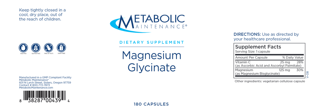 Source Materials: Magnesium is a mined mineral. Glycine is synthetic. Ascorbyl palmitate is derived from corn sorbitol and palm oil.