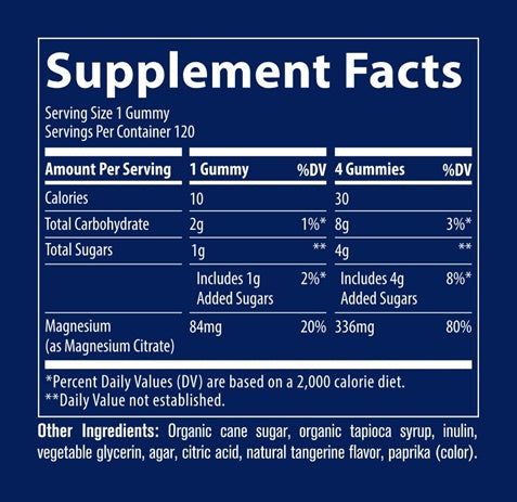 Magnesium Gummies are a delicious way to provide your body with magnesium, one of the most important minerals in the body. Research has shown that up to 80% of Americans are deficient in magnesium. During times of elevated stress or strenuous physical activity, you may want to replenish your body with additional magnesium.*