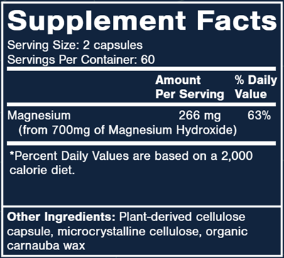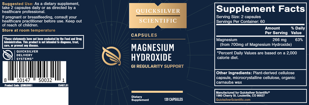 Magnesium Hydroxide is designed to support GI regularity in those prone to constipation. It provides 350 mg of magnesium hydroxide per capsule to support occasional constipation and healthy bowel motility.