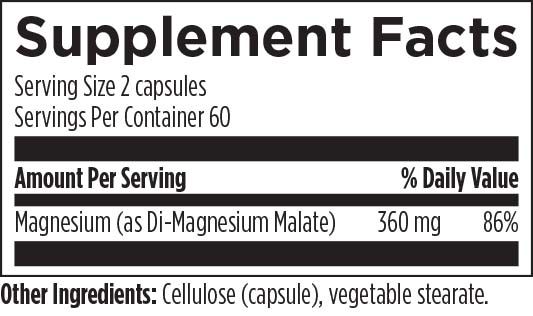 Magnesium Malate is a highly bioavailable form of magnesium. It contains di-magnesium malate, which is magnesium bound to malic acid. Magnesium is one of the most critical minerals in the human body that is involved in hundreds of enzyme reactions. Malic acid is a compound found naturally in apples and other fruits and vegetables, and it is included in this product because of its role in the Krebs cycle, which is the energy-producing system in the body.