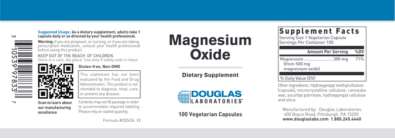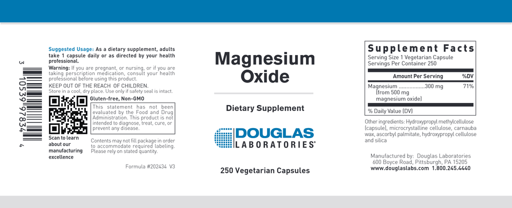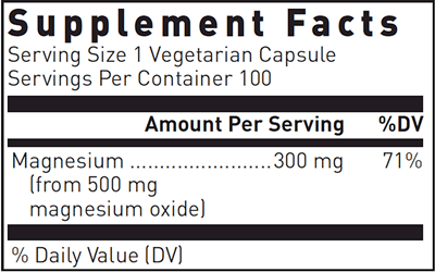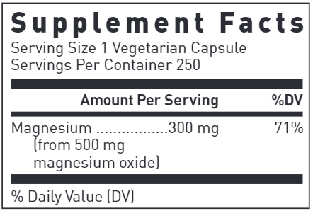 Magnesium Oxide supplies 300 mg of elemental magnesium from magnesium oxide in each vegetarian capsule.