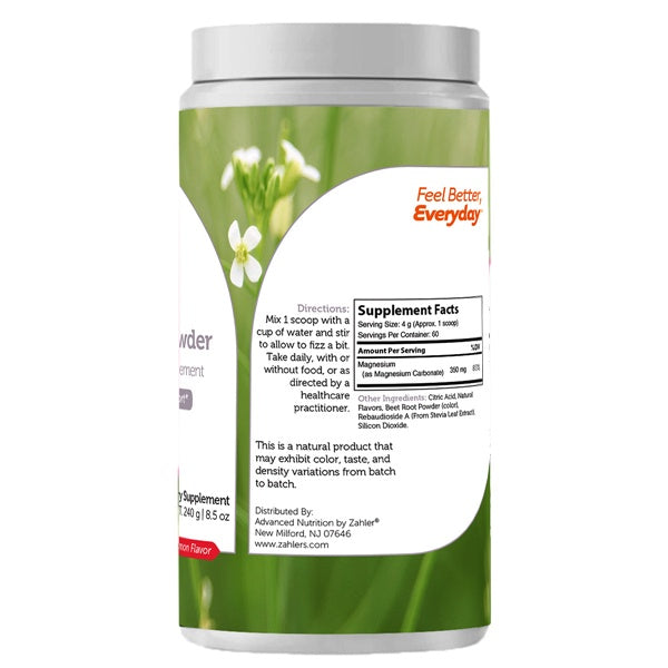 Zahler's Magnesium Powder provides 350 mg of magnesium per serving for general wellness and muscle support.