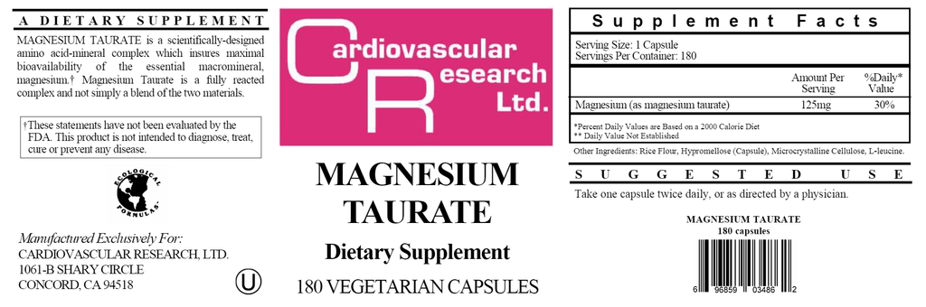 Magnesium Taurate by Ecological Formulas may target carbohydrate dynamics in the body, heart health and blood pressure support*.