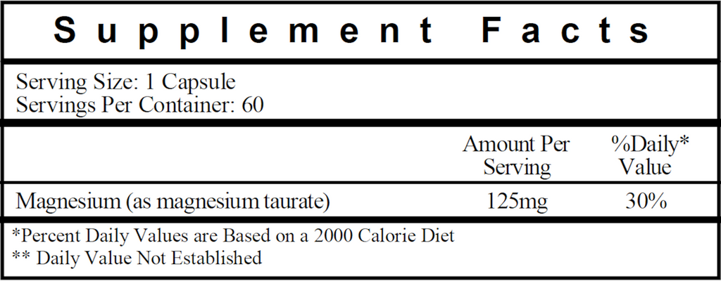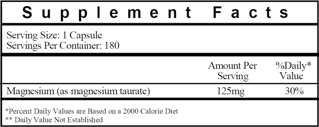 Magnesium taurate is a high absorption form of magnesium. Magnesium is essential for helping almost every system in the body function properly.* Over 300 reactions in the body depend on normal magnesium levels.