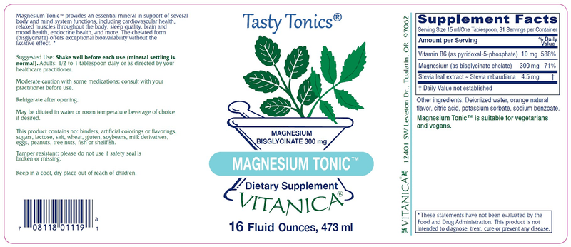 Magnesium Tonic provides a delicious way to take the highly absorbable bisglycinate form of this essential mineral for optimum human health and functioning. Promotes healthy sleep and brain functions, relaxed muscles, healthy cardiovascular system functions and so much more.