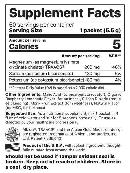 A great-tasting, fast-acting, calming magnesium supplement powder utilizing the highly bioavailable Magnesium Lysinate Glycinate Chelate exclusively from Albion Labs, combined with bicarbonate.*