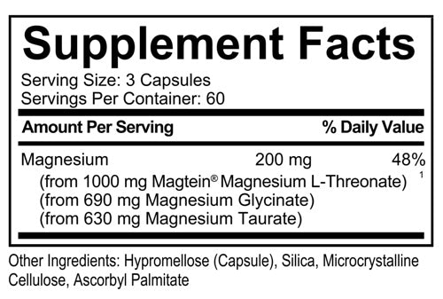 Made with three types of magnesium with the highest absorption rates, L-Threonate, Taurate, and Glycinate, MagTech helps support: