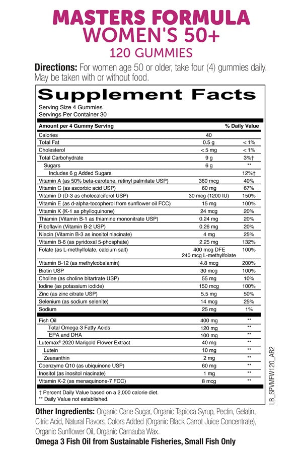 Directions: For women age 50 or older, take four (4) gummies daily. May be taken with or without food.