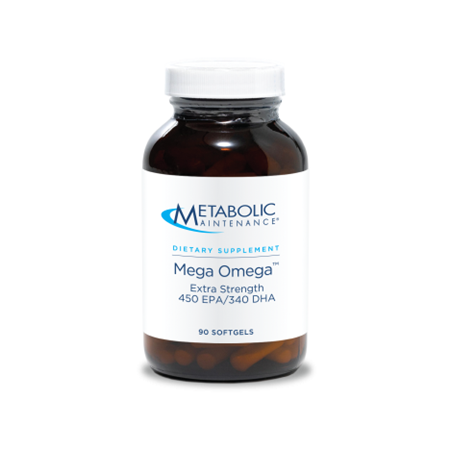 Mega Omega Extra Strength fish oil supplement is a rich source of the omega-3 fatty acids EPA and DHA. Omega-3 fatty acids have been well studied and play a major role in human health. They provide protective effects for the immune, neurological, and cardiovascular systems and have been shown to promote healthy insulin and glucose metabolism. Our fish oils are concentrated, purified, and thoroughly tested by a third party lab to give the benefits of omega-3s without the risk of contaminants common in fish, such as mercury and arsenic. Mega OmegaTM Extra Strength offers 1000 mg of concentrated fish oil providing 450 mg of EPA and 340 mg of DHA per softgel.