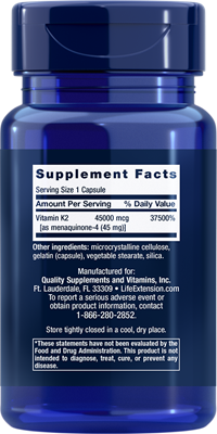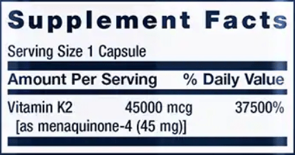 Vitamin K2 supports bone health, and this clinically studied 45,000 mcg (45 mg) of vitamin K2 in the form of MK-4 (menaquinone-4) has been shown to be effective for those who need that support the most.