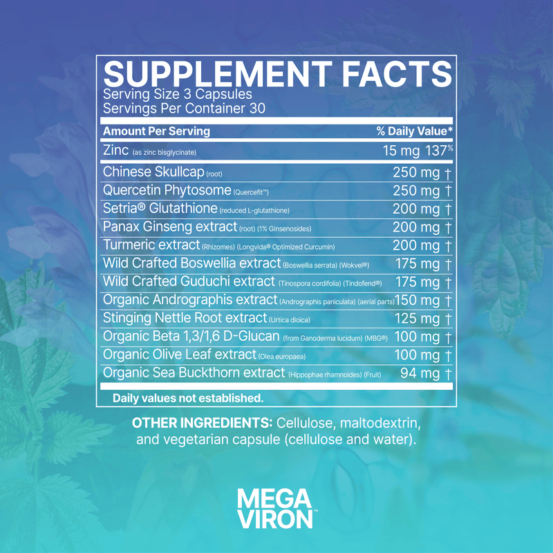 MegaViron™ is an innovative immune supplement formulated with potent herbs with antioxidant properties for seasonal immune support. MegaViron™ was designed to provide a short-term burst of powerful immune support.