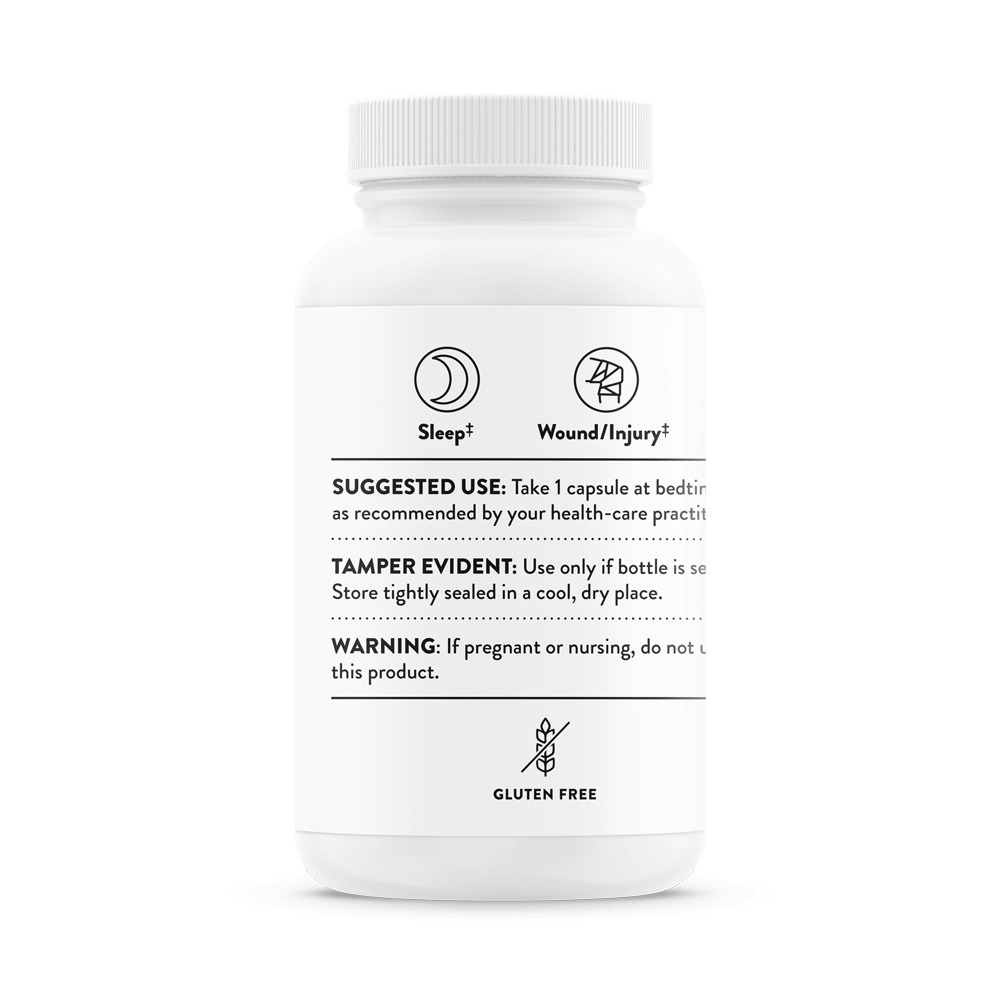 Thorne offers melatonin in both 3 mg (Melatonin-3) and 5 mg (Melatonin-5) capsules. Melatonin, the primary hormone of the pineal gland, is a powerful "chronobiotic" that helps maintain the body's normal circadian rhythms.* In individuals who have difficulty sleeping or who have altered circadian rhythms because of jet lag or night shift work, melatonin supplementation promotes the resynchronization of this cycle.* Supplementation can also benefit those whose difficulty sleeping is caused by the aging-related decrease in the body's ability to synthesize melatonin from the amino acid tryptophan.* Research indicates melatonin exerts its sleep-promoting efficacy by decreasing the amount of time needed to fall asleep, by promoting the ability to stay asleep, and by enhancing the depth of sleep.*