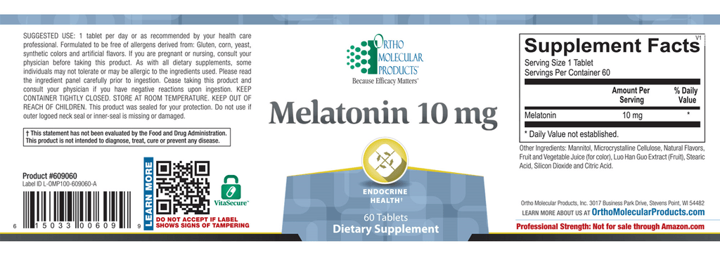 Melatonin is a hormone produced by the pineal gland and plays a key role in regulating the body’s circadian rhythms, endocrine secretions and sleep patterns. It also plays an essential role in maintaining normal inflammatory balance and supports the body with strong antioxidant activity. This formulation is available as a 10 mg tablet for flexible dosing.