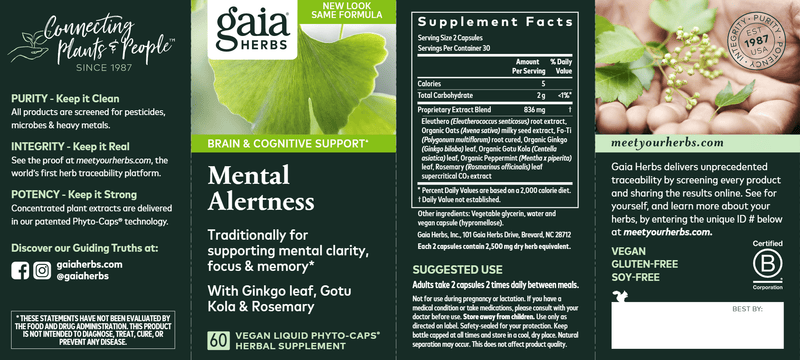 Lack of focus can make everyday activities a struggle. Gaia Herbs Mental Alertness is made with a synergistic blend of herbs traditionally known for supporting mental clarity, focus and memory.*
