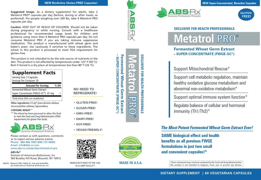 KEEP OUT OF REACH OF CHILDREN. Should not be taken during pregnancy or while nursing. Consult with a healthcare professional for recommended usage levels for children and guidance using more than 4 Metatrol PRO capsules per day. Do not consume Metatrol PRO if you are taking immune suppressive medication. This product is manufactured with wheat germ and baker’s yeast. Use cautiously if sensitive to these ingredients. Gluten and gliadin are removed, so that this product is gluten-free.