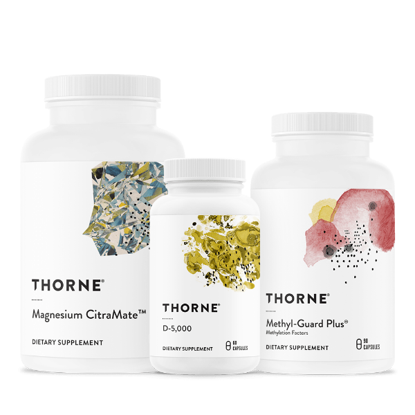 Thorne’s Methylation Bundle contains the supplements Methyl-Guard Plus®, Magnesium CitraMate, and D-5,000 to support optimal methylation throughout the body.*