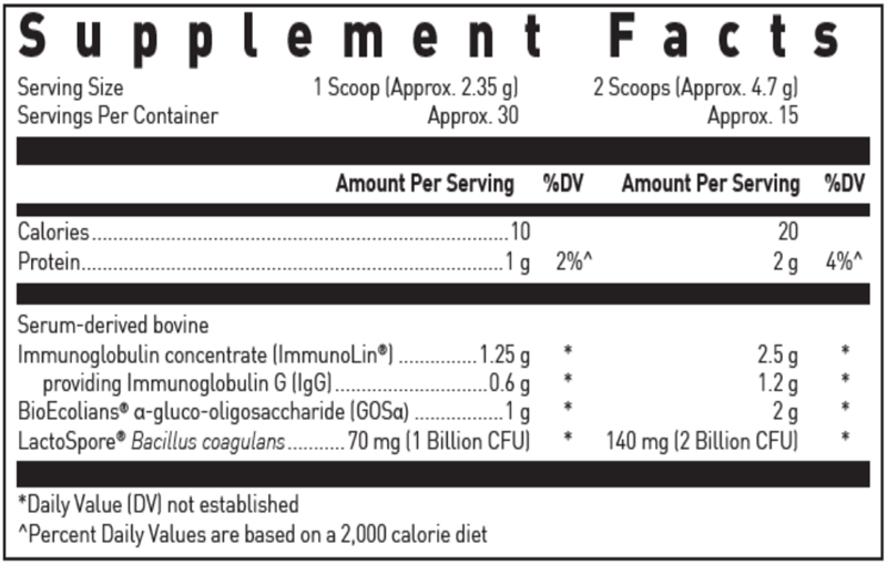 ImmunoLin® immunoglobulins, prebiotic, and spore probiotic for intestinal health‡